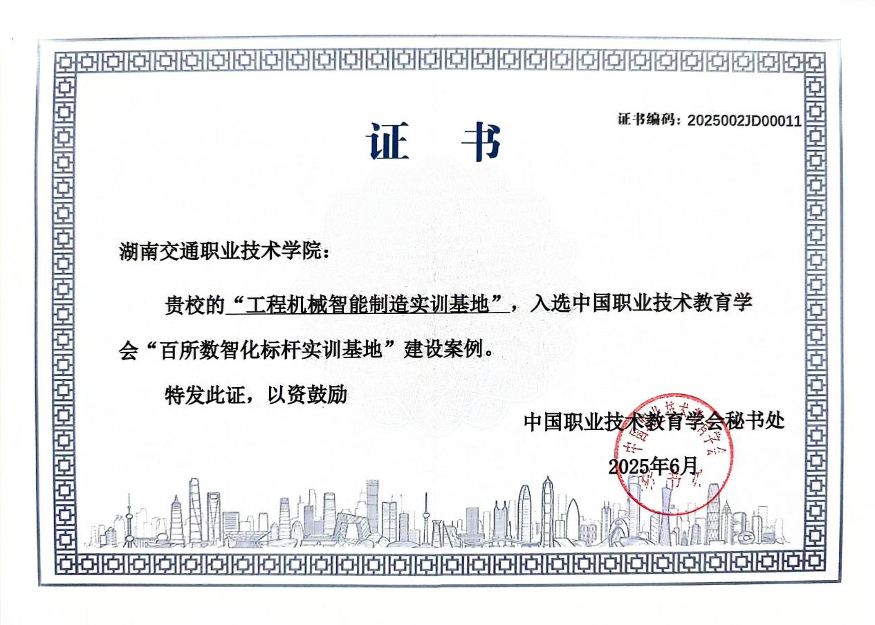 近日,机电工程学院申报的“工程机械智能制造实训基地”项目,经过层层选拔与严格评审,成功入选中国职业技术教育学会“百所数智化标杆实训基地”建设案例名单,标志着学院在深化产教融合、推进实训教学数字化智能化转型方面取得的突出成就获得了权威认可。