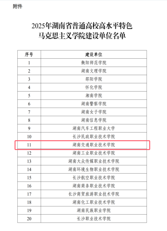 湖南交通职业技术学院入选湖南省高水平特色马克思主义学院建设单位