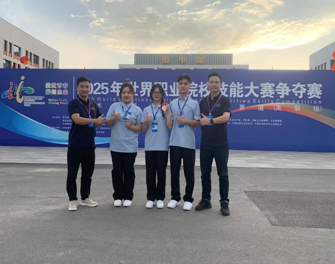 8月26日至29日,2025年世界职业院校技能大赛总决赛争夺赛“土木建筑设计与管理赛道”高职组赛事在甘肃交通职业技术学院举行。本次比赛汇聚了全国183支顶尖参赛队伍,715名选手参赛,杨思珺、钟炆栩、何林俊在曾猛、黄治老师指导下,以湖南地方特色为基,设计与管理为翼,结合实际项目,稳战稳打,斩获铜奖。