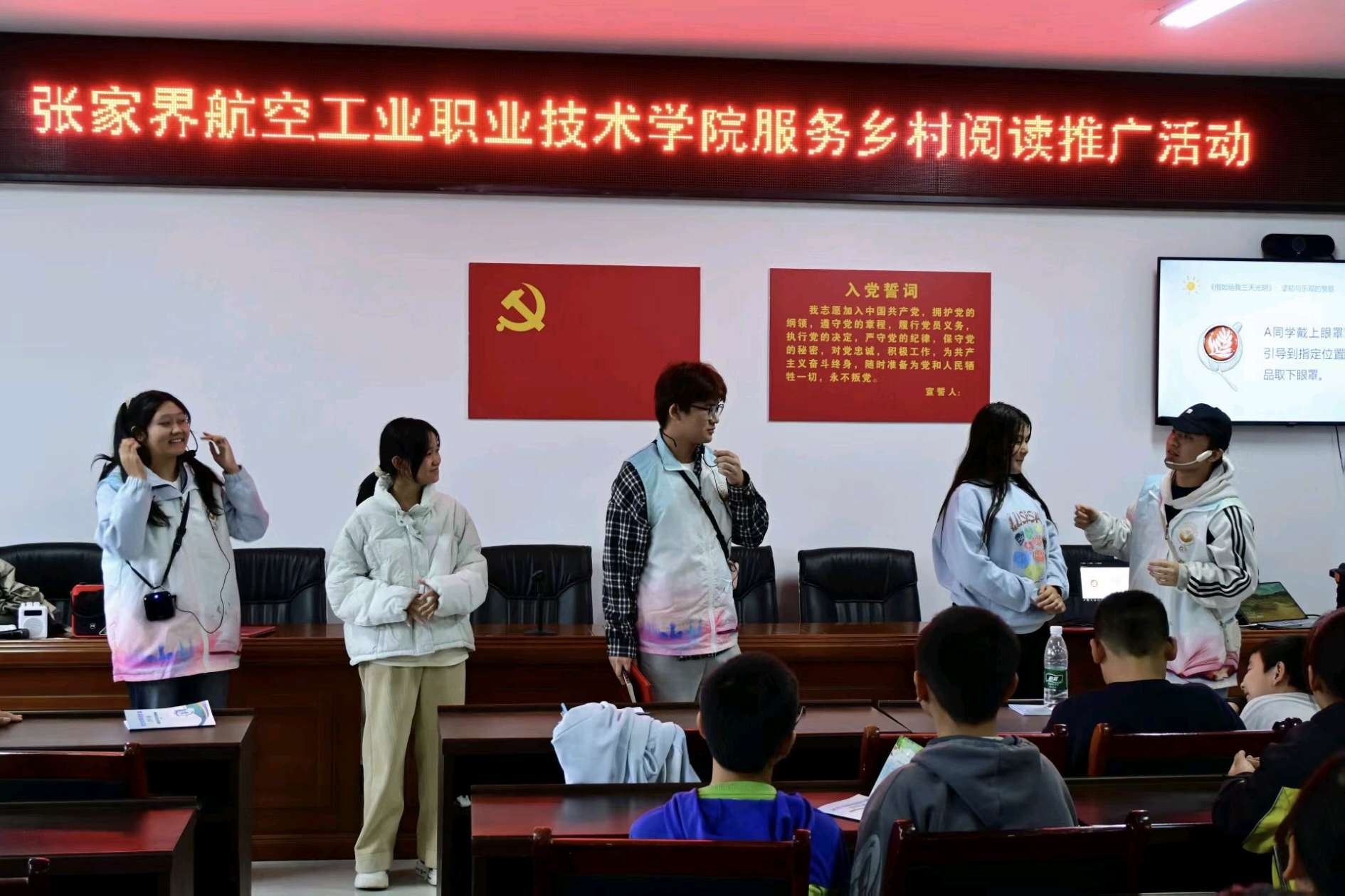 邓欣老师带领10名志愿者组成普通话推广团队,用趣味形式激发孩子兴趣。教唱普通话儿歌、开展绕口令比拼、玩“你画我猜”对话游戏,1对1指导孩子们发音。由彭翠云老师带队的阅读分享团队,志愿者们以《假如给我三天光明》为核心,引导孩子闭眼体验“黑暗与无声”,通过“如何面对困境”“想看见的美好事物”等问题互动,让书本中的动人故事走进孩子心里,现场还送出绘本小礼品,鼓励孩子们爱上阅读。
