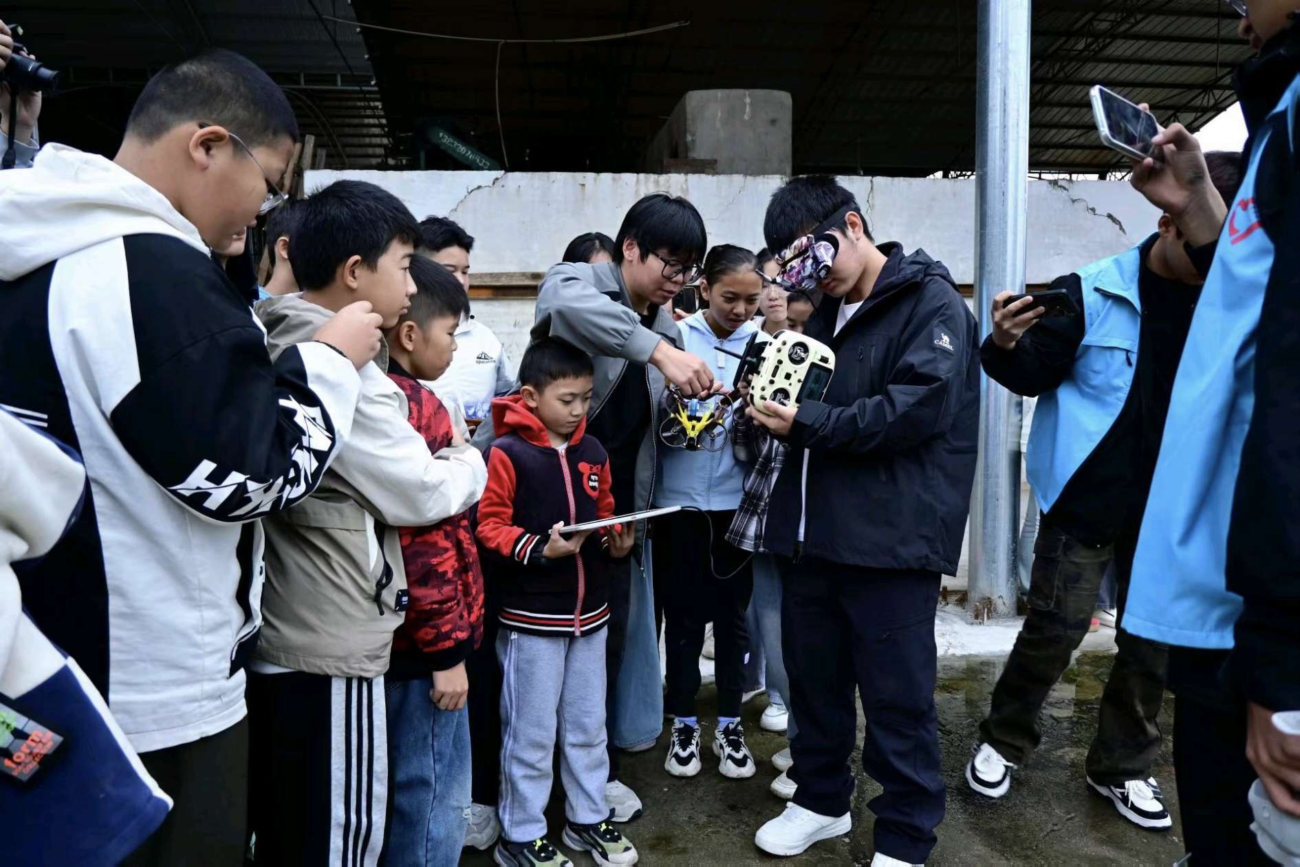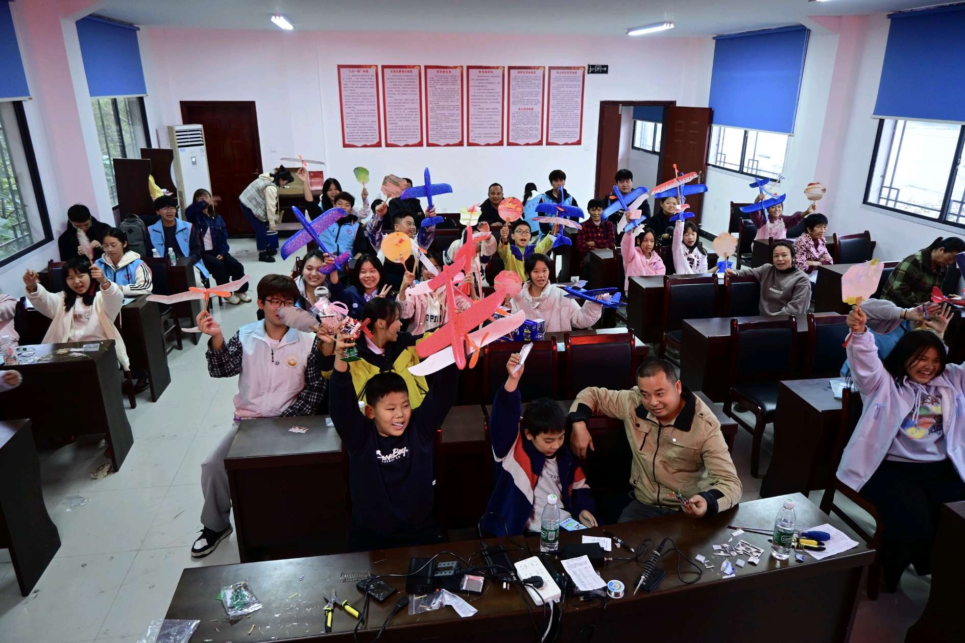 最热闹的当属航模科普区,9名志愿者先通过图片、短视频,讲解固定翼航模、无人机的飞行原理,以及在乡村农业植保、灾害勘察中的用途;随后展示3款航模实物,操控无人机进行低空飞行表演,引得孩子们阵阵欢呼。更让孩子兴奋的是手抛模型飞机组装体验,30个组装名额很快满员,志愿者手把手教孩子拼接,看着自己的“飞机”飞上天,孩子们脸上满是成就感。