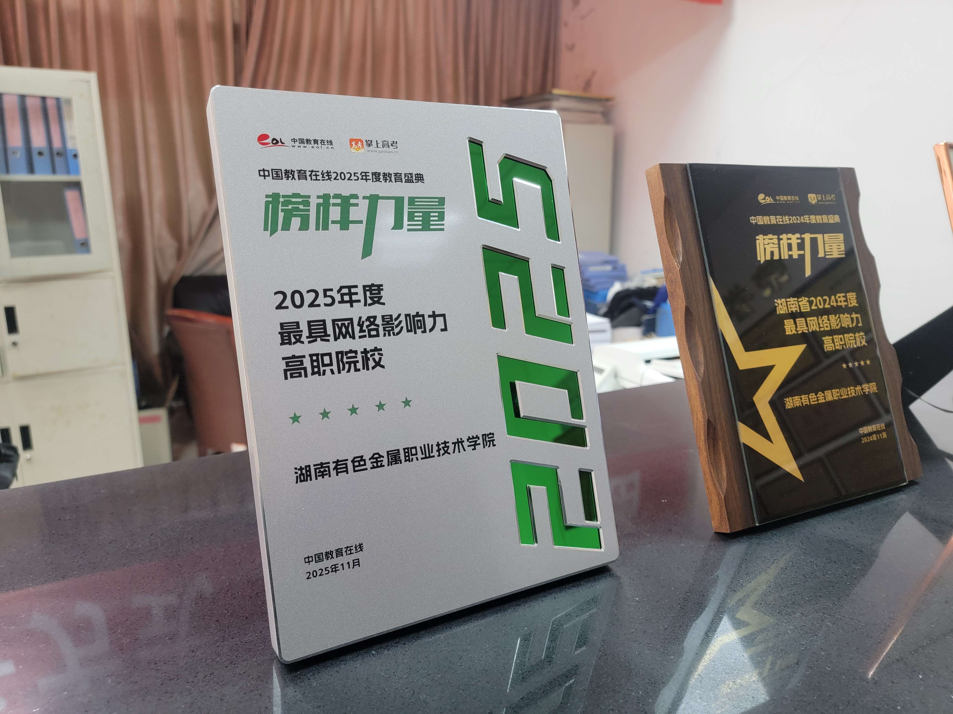 近日,中国教育在线“榜样力量·2025年度教育盛典”优秀案例名单公布。湖南有色金属职业技术学院凭借极具创新性与前瞻性的招生宣传策略,以及扎实过硬的宣传执行实力,从众多高校中突围,获评“2025年度最具网络影响力高职院校”。