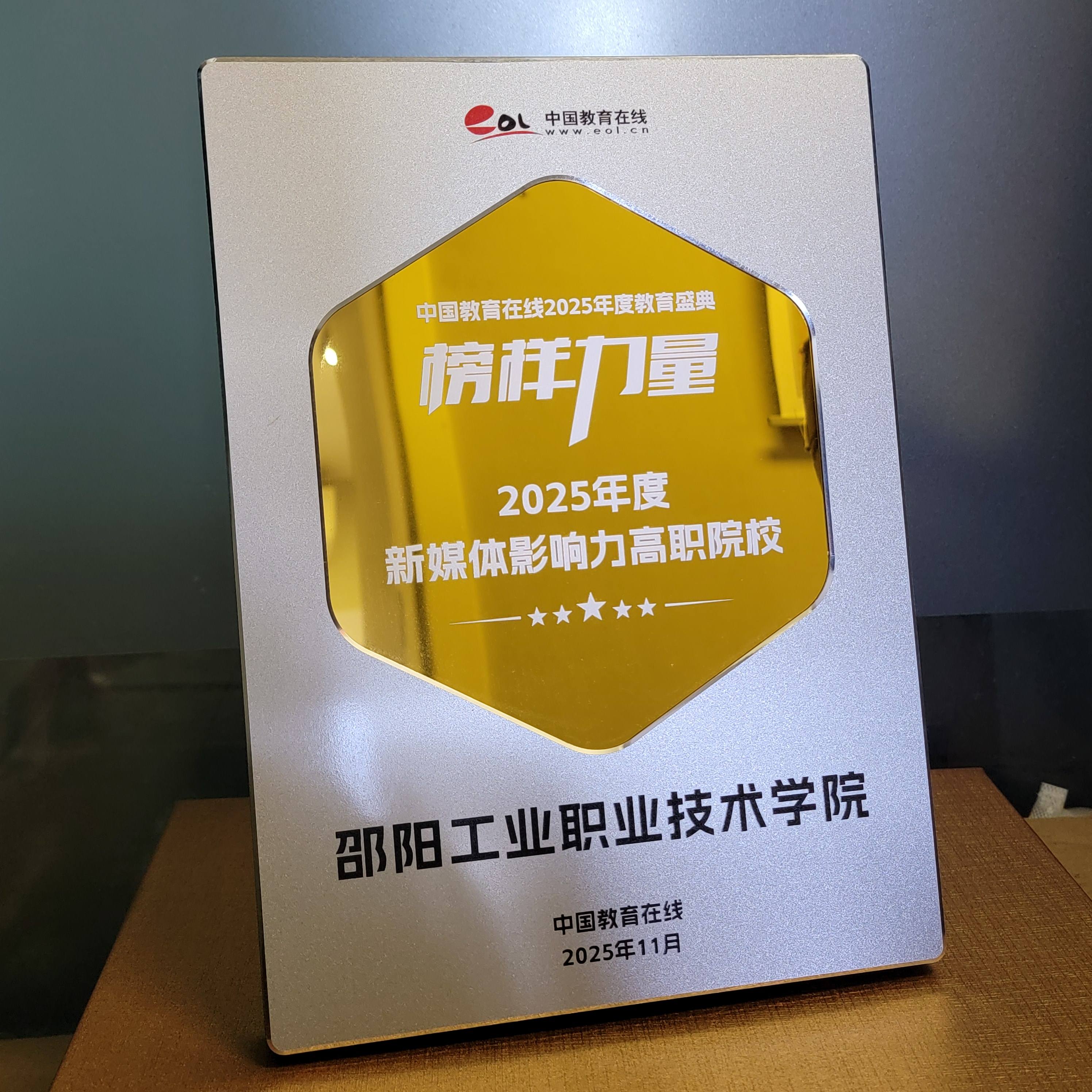 近日,中国教育在线“榜样力量·2025年度教育盛典”优秀案例名单公布。邵阳工业职业技术学院凭借在新媒体领域的卓越成就与深远影响力,荣获 “2025年度新媒体影响力高职院校”。