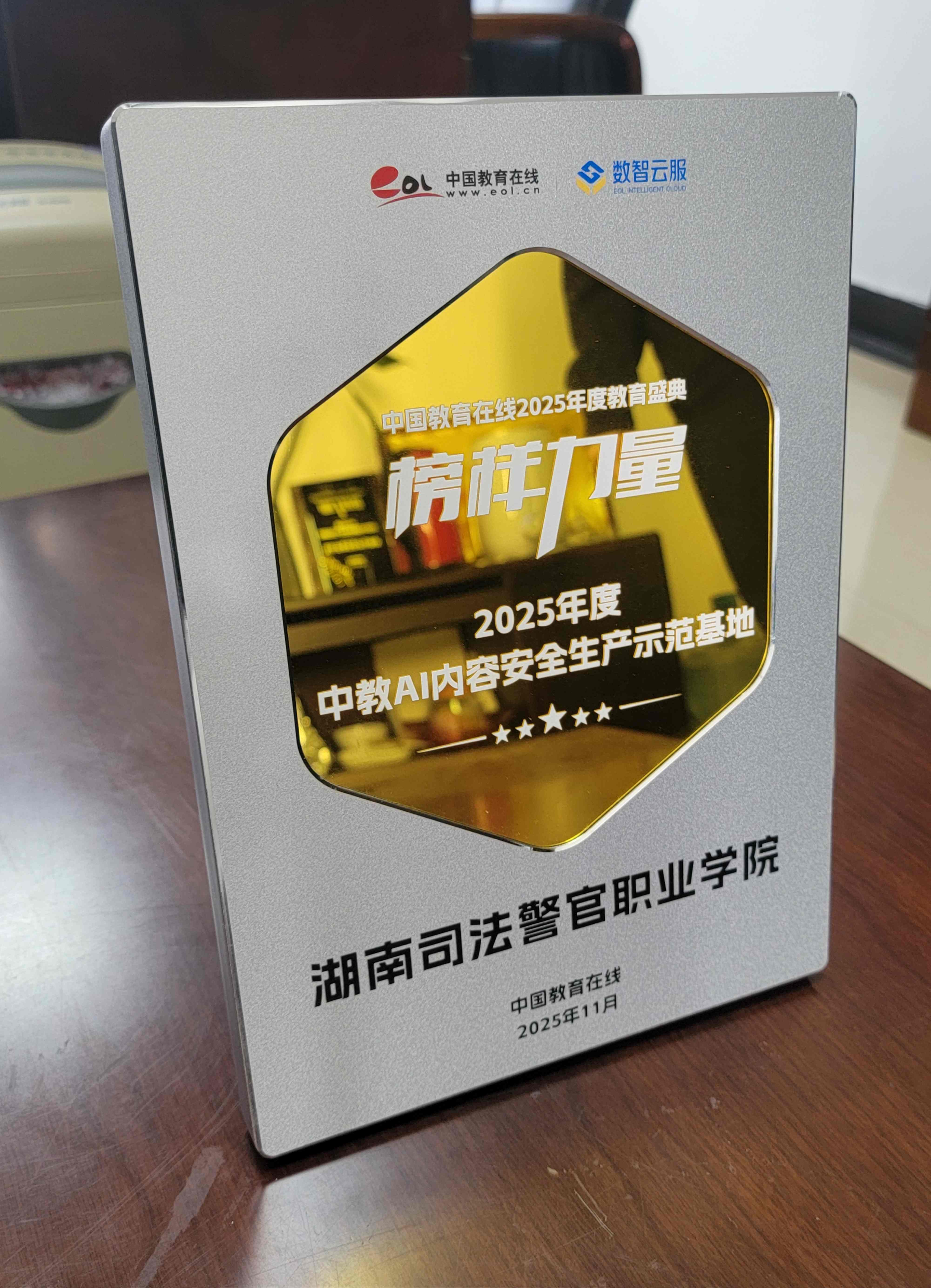 湖南司法警官职业学院荣获“2025年度中教AI内容安全生产示范基地”