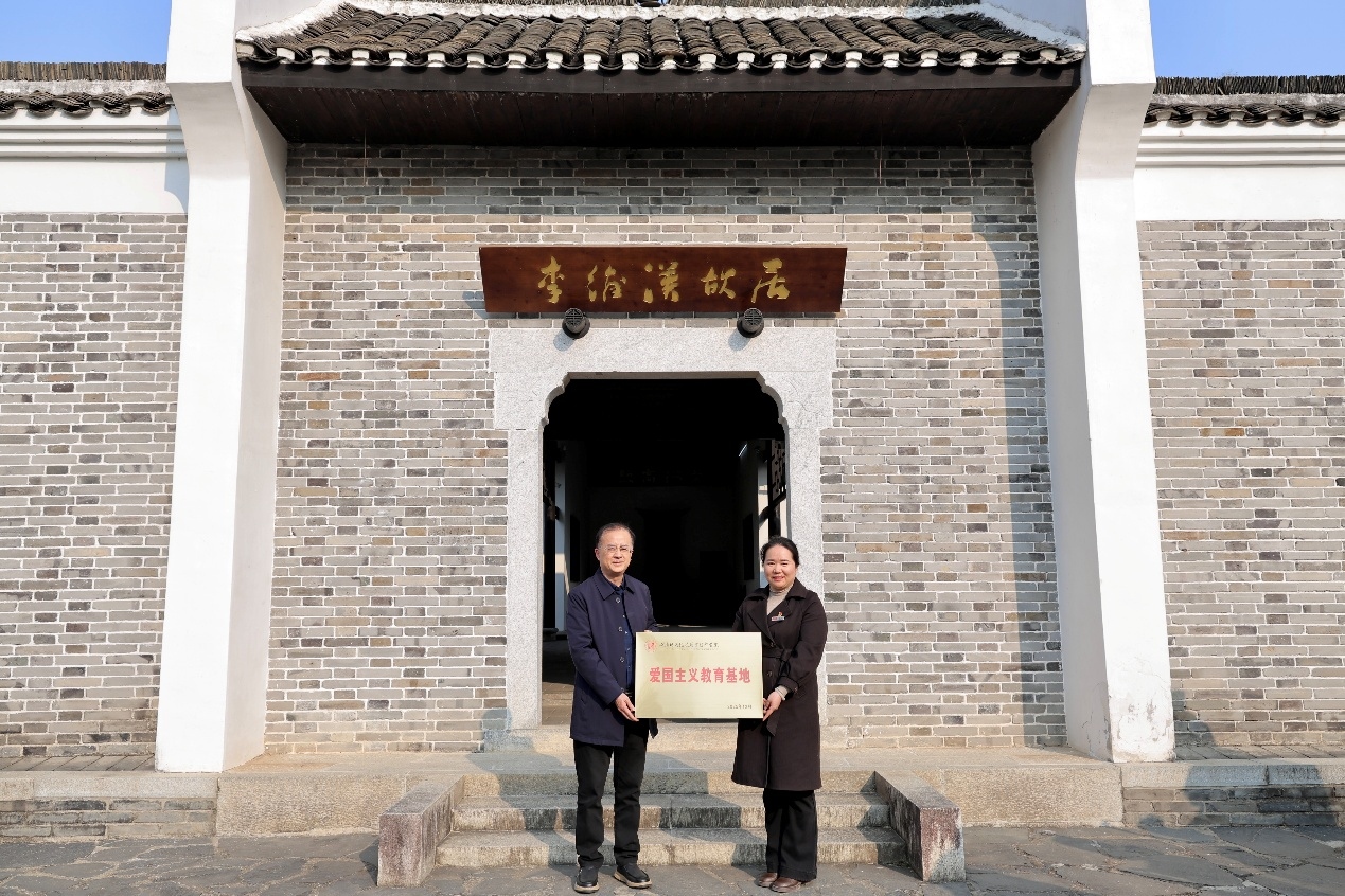 湖南现代物流职业技术学院党委副书记邓剑波、李维汉故居馆长李旭共同为爱国主义教育基地揭牌