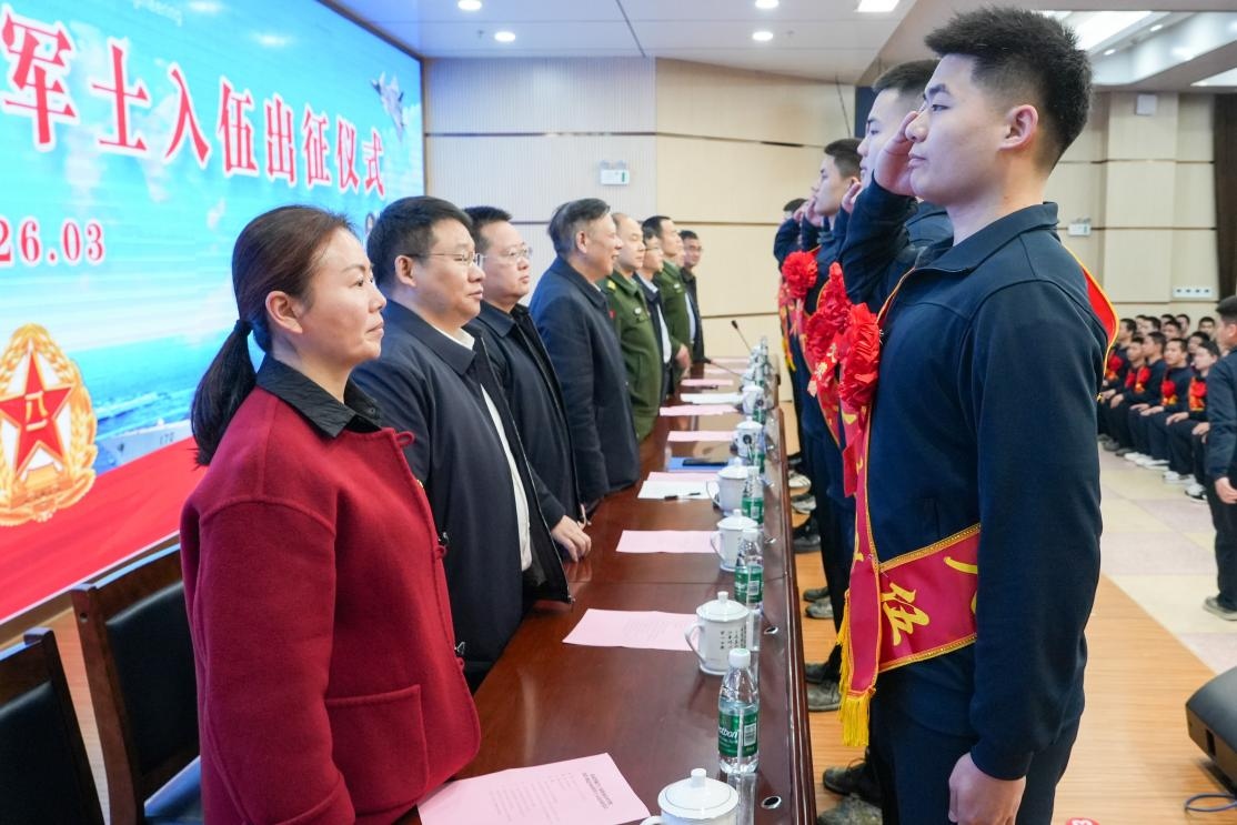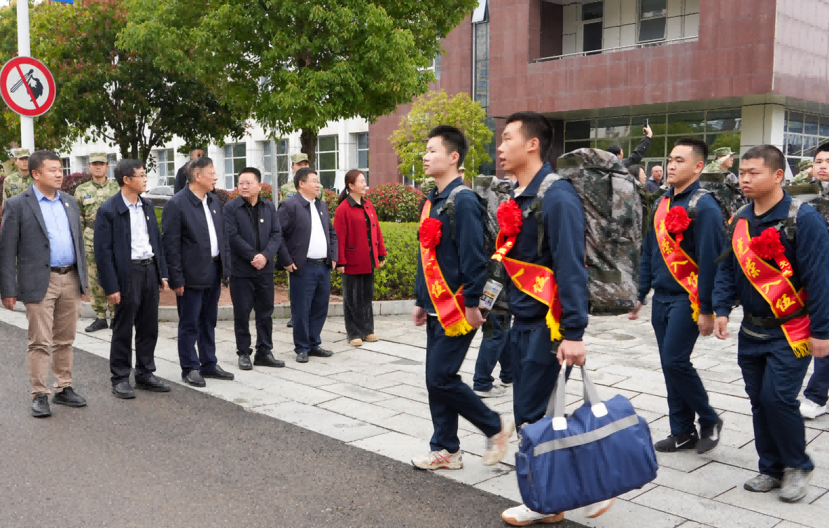 仪式在雄壮激昂的国歌声中正式拉开帷幕,全场人员肃立注目、齐声高唱,现场氛围庄重而热烈。随后,张家界军分区动员处上校处长文武全宣读入伍命令,正式宣告全体2023级定向培养军士告别校园、迈入军营,踏上保家卫国、淬炼青春的崭新征程。与会领导为9名定向培养军士代表佩戴鲜艳大红花,一束束红花映照着青春面庞,饱含着对入伍学子的崇高敬意与殷切期盼。