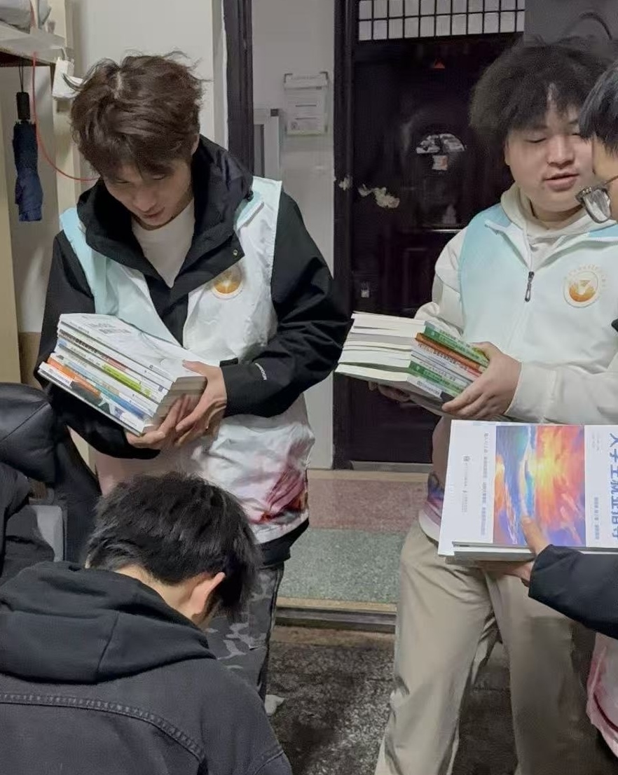 “我们收的不只是书,更是一份份沉甸甸的信任。”图书馆馆长郭军表示。今年是学校图书馆坚持上门收书服务的第十个年头,图书馆逐步形成“集中站点+寝室收书+职工上门”三位一体的成熟服务模式,志愿者穿梭于宿舍楼上门收书,馆员为教职工提供预约登门取书服务,将服务延伸至校园各个角落。