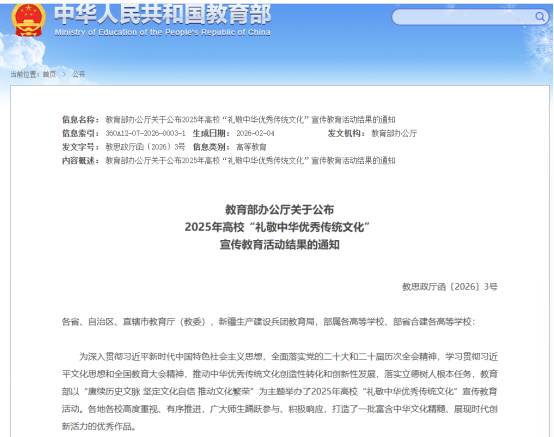 下一步,学校将以此次荣誉为契机,进一步发挥高校在文化传承创新中的独特优势,持续推动中华优秀传统文化在校园落地生根、在青年中薪火相传,为培养堪当民族复兴大任的时代新人贡献邵阳工院力量。(通讯员:王周钦 罗晴)