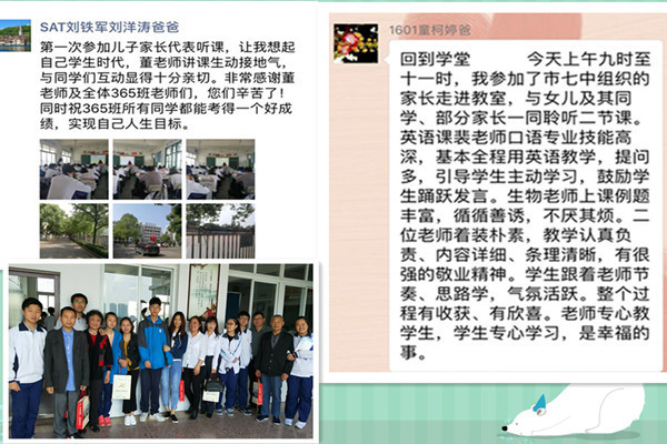 中国教育在线 讯 “今天,我参加了市七中组织的家长走进教室,与儿及其同学、部分家长一同聆听二节课。英语课裴老师口语专业技能高深,基本全程用英语教学,提问多,引导学生主动学习,鼓励学生踊跃发言。生物老师上课例题丰富,循循善诱,不厌其烦。二位老师着装朴素,教学认真负责、内容详细、条理清晰,有很强的敬业精神。学生跟着老师节奏、思路学,气氛活跃。整个过程有收获、有欣喜。老师专心教学生,学生专心学习,是幸福的事。”这则题为《回到学堂》的微信在常德市七中家长群被大量点赞和转载。这是常德市七中“教学开放日”活动之后的家长感言。