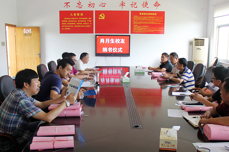 6月25日下午,临澧一中优秀校友、南华大学核资源工程学院肖月生书记带着他新出版的《说字解梦》书籍,返回母校赠送给母校。学校校长、党委书记陈伟、学校副校长、纪委书记李征界、副校长蹇敦香、朱福文、工会主席酉世民以及全体干部参加了本次捐书活动。