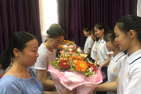 紧接着,学生代表向老师们献花,一捧捧鲜花承载着学子们对亦师亦友的老师们的感恩。