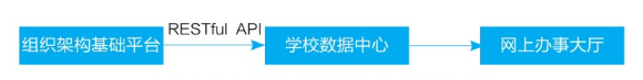 组织架构基础服务平台为网上办事大厅提供了重要的支撑,如上图所示,组织架构基础服务平台通过API接口把岗位设置、人员配置等数据推送到学校的数据中心,数据中心再将实时数据准确推送到网上办事大厅。根据岗位人员数据(Org开头的数据),网上办事大厅可对各项办事流程的审核节点进行岗位及人员设置,当岗位更新及人员变动时,将自动更新审核节点的岗位人员信息,有效提高网上办事大厅的信息更新效率。