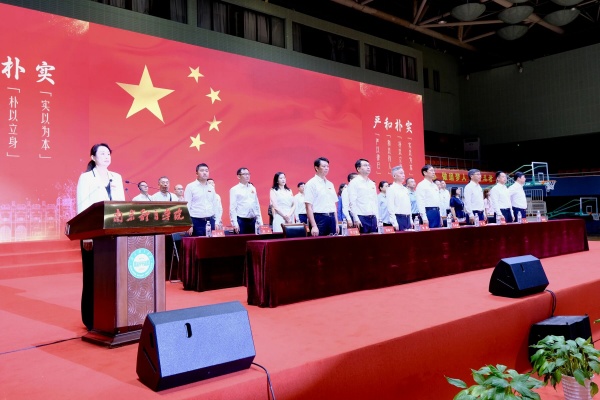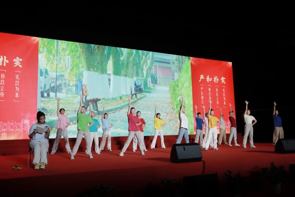 最后,现场全体师生一同唱响《南体之歌》。激昂的旋律如号角吹响,嘹亮的歌声似大潮奔涌,在体育馆久久回荡。这歌声,是南体人矢志不渝的誓言,传递出师生们加快建设高水平体育大学,为体育强国事业贡献力量的坚定决心与豪迈情怀。