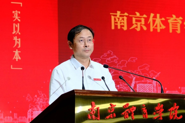 吴兵成在典礼上发表了题为《继往开来 行稳致远》的讲话。他代表全校师生员工,向2025级全体新生表示诚挚的祝贺和热烈的欢迎,向悉心培养同学们的师长致以衷心的感谢和崇高的敬意。他指出,南体始终坚守体育报国、为国争光的初心使命,69年来弦歌不辍,为国家培养了18位奥运冠军、121位世界冠军和数以万计的体育专业人才,取得了“育人才、夺金牌、出成果”的辉煌成就,被誉为“世界冠军的摇篮、体教融合的典范”。作为求索真知、增长学识的沃土,磨砺本领、成就未来的热土,激扬青春、创造回忆的乐土,南京体育学院将陪伴着同学们度过人生中最宝贵的青春韶华。