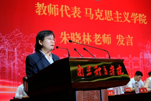 马克思主义学院朱晓林老师代表教师发言。她勉励同学们立大志、明大德、成大才、担大任,努力成为担当民族复兴大任的时代新人。