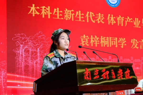 体育产业与休闲学院袁梓桐同学代表本科生新生发言。她呼吁大家用汗水浇灌梦想,在训练场上刻下青春的印记;用热情感染世界,在赛场上展现南体人的风采;用担当回应时代,在复兴路上贡献青春的力量。