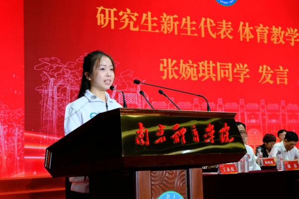 体育教学专业张婉琪同学代表研究生新生发言。她表示,要立德修身、坚守初心,明确目标、知行合一,夯实基础、追求卓越。