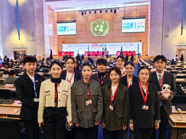在随后举行的联合国贸易与发展会议青年论坛上,冯子涵与同学们深入参与了“绿色崛起——青年共建可持续未来”“经济不稳定下的生计再想象”“为未来赋能的职业发展”三场深度研讨会,并在“30分钟制定商业计划”实战演练中,与来自世界各地的青年代表积极交流、碰撞思想。他们以流利的英语表达能力、开阔的国际视野和富有建设性的见解,在探讨全球性挑战的解决方案时,贡献了独特的“中国智慧”,赢得了与会者的广泛赞誉。