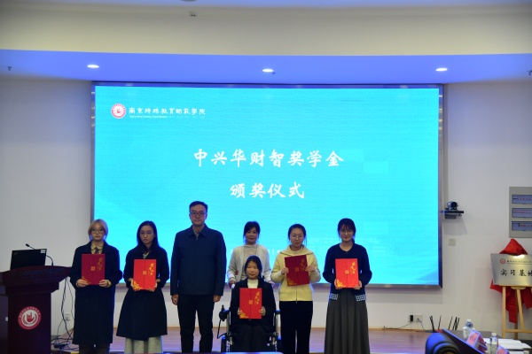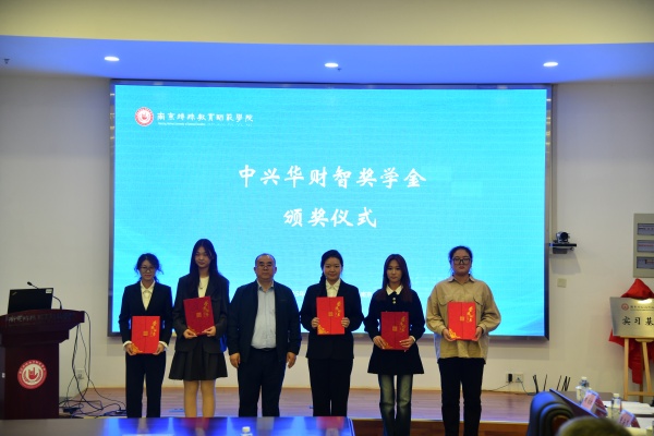 “中兴华财智奖学金”的颁发则为仪式注入温暖力量。高飞与李大胜共同为胡贝、柴米萱等10名财务管理专业优秀学生颁奖。该奖学金由中兴华会计师事务所江苏分所专项设立,用于激励财务管理专业学生勤奋学习、精进专业,同时也助力融合教育学生的成长与发展。