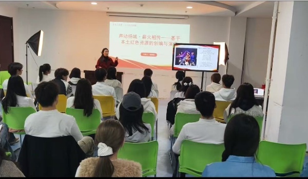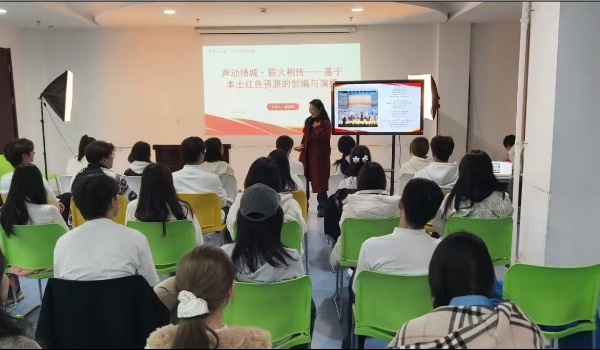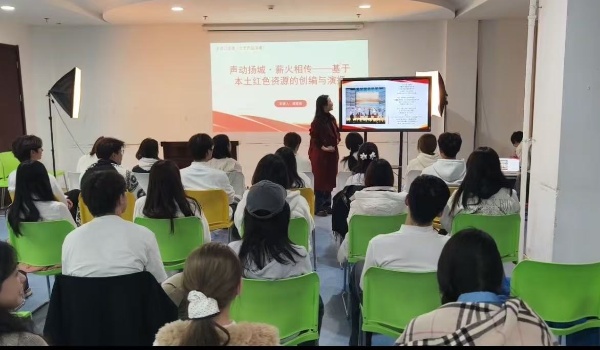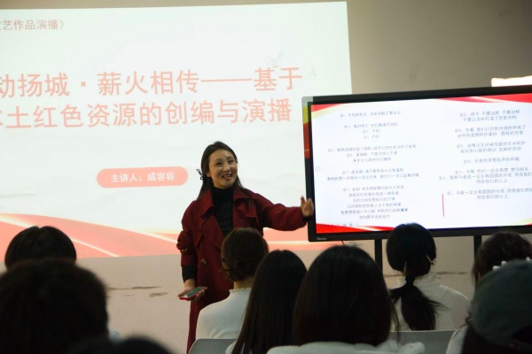 近日,在扬州大学广陵学院备受学生欢迎的美育公选课《文艺作品演播》上,一堂题为“声动扬城·薪火相传——基于本土红色资源的创编与演播”的专题教学精彩上演。本次课程由学院美育中心副主任成容容老师主讲,她以声音为媒介,将扬州厚重的红色历史娓娓道来,为现场师生呈现了一堂深刻而动人的美育思政课。这既是该课程一次特色专题展示,也是学院多年来坚持将美育与思政深度融合的常态化教学缩影。