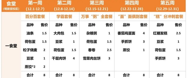 *套餐内容仅供参考,不同食堂可能会根据实际情况进行套餐搭配调整,以实际套餐内容为准
