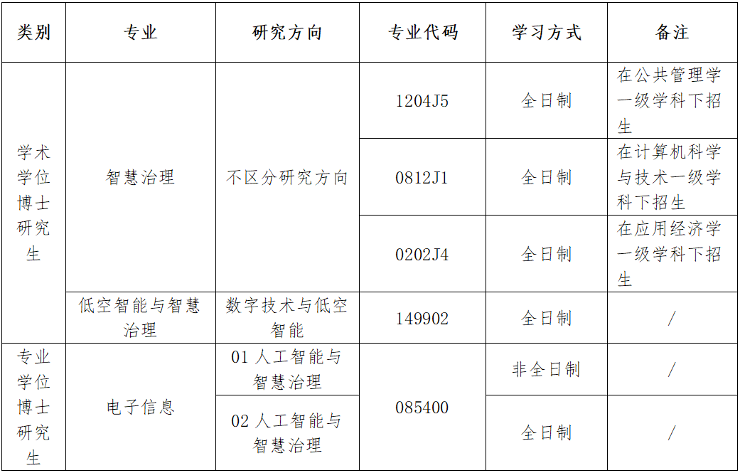 智慧治理学院是中国人民大学围绕国家重大战略,发展交叉学科、新兴学科,践行“人工智能+”行动的前沿创新高地。学院设立了全国首个“智慧治理”博士、硕士点,新增低空智能与智慧治理(数字技术与低空智能方向)博士、硕士专业。2026年博士研究生招生专业如下: