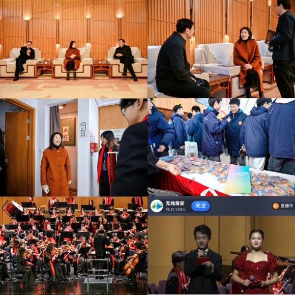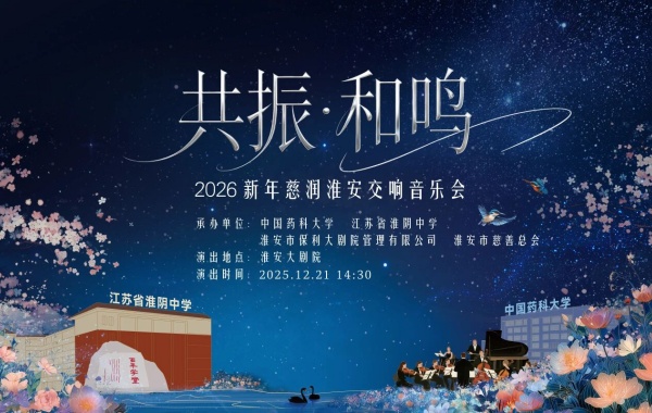 12月21日下午,“共振•和鸣 2026新年慈润淮安交响音乐会”在淮安市保利大剧院圆满落幕。活动由中国药科大学与江苏省淮阴中学联合主办,两校交响乐团联袂演绎,以高雅艺术为桥、慈善爱心为翼,奏响高高协同与公益担当的时代强音。中共淮安市委常委、宣传部部长李森,中共淮安市委常委、副市长董国喜,淮安市人民政府副市长封蕴珊,市慈善总会会长赵洪权等地方领导,中国药科大学党委常委、党委副书记朱红及两校相关负责人观看演出。音乐会由淮阴中学2021届毕业生、中国药科大学大四学生何明瑞与淮阴中学高一学生宋明瑾主持,线上线下超20万人次同步观演。