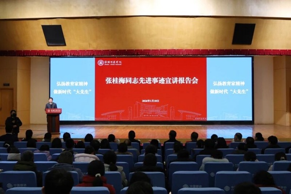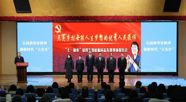 图为张桂梅同志先进事迹宣讲报告会在淮师举行