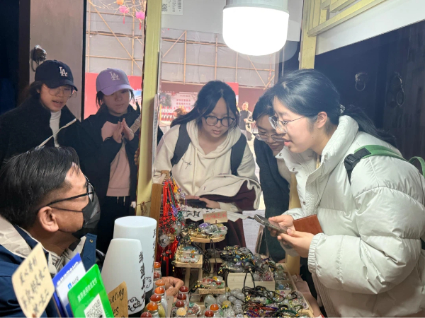 “创新融合”成为本次探访的核心关键词。在南京博物院中,AR技术让文物“活”起来,手机扫描即浮现3D动画,成员感叹“数字技术让文物可感可触”。老门东的非遗小店铺里,采访者吕墨涵与李师傅交流得知,他坚守扇面创作四十余年,每日练笔两小时,坦言“租金上涨、宣传不足”的困境,盼更多平台让年轻人了解传统笔墨;张师傅深耕瓶内绘画16年,三年基本功打磨让不少人半途而废,最难时靠摆摊补贴,坚守“别让手艺断了”的嘱托。小店铺门头古朴,手工作品引得游客频频驻足,师生们在这些朴素的坚守中触摸到了非遗传承最真实的温度与挑战。实践团队认识到,非遗的生命力不仅在于技艺本身,更在于一代代匠人对文化使命的自觉承担,这为青年思考传统文化的当代生存提供了深刻启示。夜幕降临,队员们行至大报恩寺,感受传统建筑与网红打卡装置的创意融合,让人感受科技的魅力。