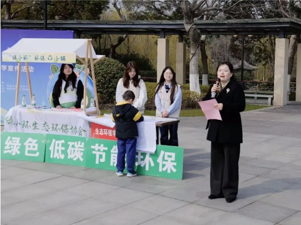 活动伊始,陈敏在致辞中道出了这次活动的特别之处:“这不仅是一场环保宣传,更是一堂走出教室、走近长江的实践课。”她希望同学们在观察、体验和互动中深化对生态保护的理解,把书本知识转化为更真实、更具体的认知。陈敏介绍,学院将以此次活动为起点,正式启动“中小学生环保宣讲”系列活动。未来,“绿小环”志愿者将带着监测数据和实践故事走进中小学课堂,通过“大手拉小手”的形式,让长江保护的种子在更多青少年心中生根发芽。