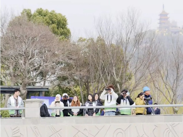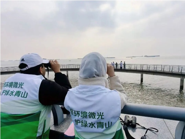 理论讲解之后,志愿者们在信誉的指导下,借助望远镜等专业设备,在江面静静搜寻江豚的踪迹。尽管活动现场江豚并未现身,但这场“追寻”本身已是一次难得的专业体验。“以前只知道江豚稀有,今天才真正体会到,保护珍稀物种需要耐心,更需要科学的监测方法。”一位志愿者感慨道。信誉现场讲解道:“观测本身就是科学监测的重要一环。记录‘没看到’同样是有效数据,能帮助我们更全面地了解江豚的活动规律。”从书本上的概念到亲临栖息地感受江豚的生存环境,同学们在追寻中体会到:生态保护不仅需要热情,更需要科学的态度和长期的坚守。