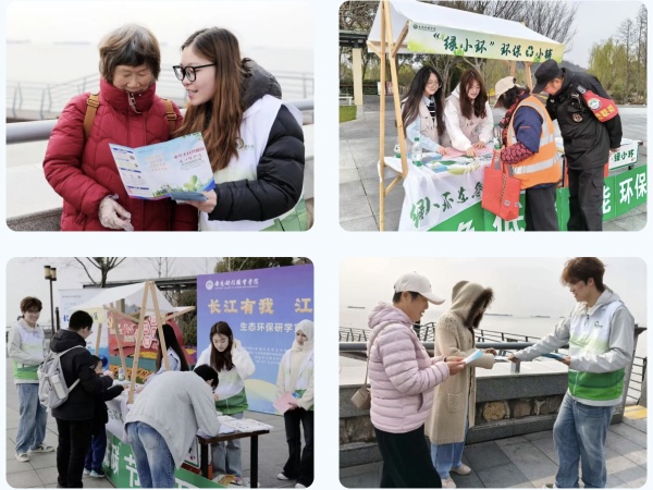 3月19日,在世界水日来临之际,生态环境学院的师生们把课堂搬到了长江边。他们联合江苏省南通环境监测中心、南通市环保宣教中心、崇川区人民检察院、南通市江豚保护协会,在滨江公园沿江区域共同开展“长江有我,江豚同行”生态环保研学宣传活动。活动获南通广播电视台专题报道。工会主席戴陈,生态环境学院党总支副书记陈敏,江苏省南通环境监测中心专家、江豚保护协会工程师信誉,崇川区人民检察院主任刘志强,生态环境学院分团委书记杨小嫚,专业指导老师施桃红等参加活动。“绿小环”生态环保协会成员全程参与活动的组织与实施。