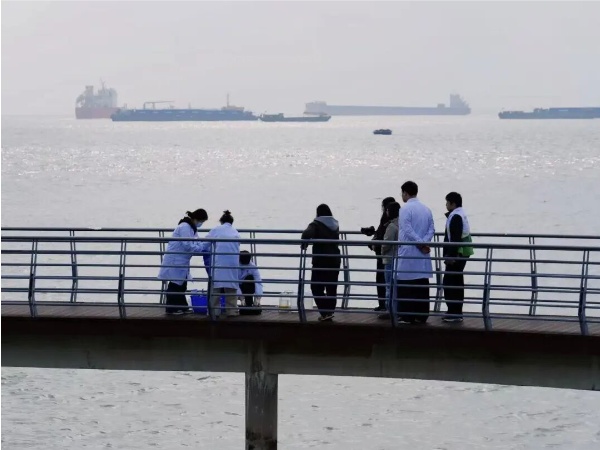 与此同时,施桃红正带领另一组志愿者开展水质监测。取样、检测、记录……大家严格按照技术规范操作,用科学数据记录长江水域生态状况。“本次水样快速检测结果显示,水质达到地表水Ⅰ类标准。”施桃红介绍道,“我们将持续以科学监测助力生态保护,守护长江和江豚的栖息地。”通过亲手操作,同学们深刻体会到:生态保护不仅需要理念引导,更离不开科学支撑和持续行动。