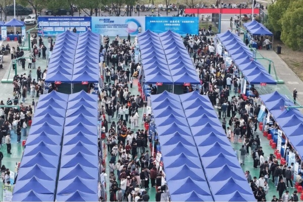 3月27日下午,“职引新动能 联动助启航”江苏省2026届高校毕业生春季促就业攻坚行动暨生物医药、高端装备制造、教育及综合类专场招聘会在学校篮球场举行。