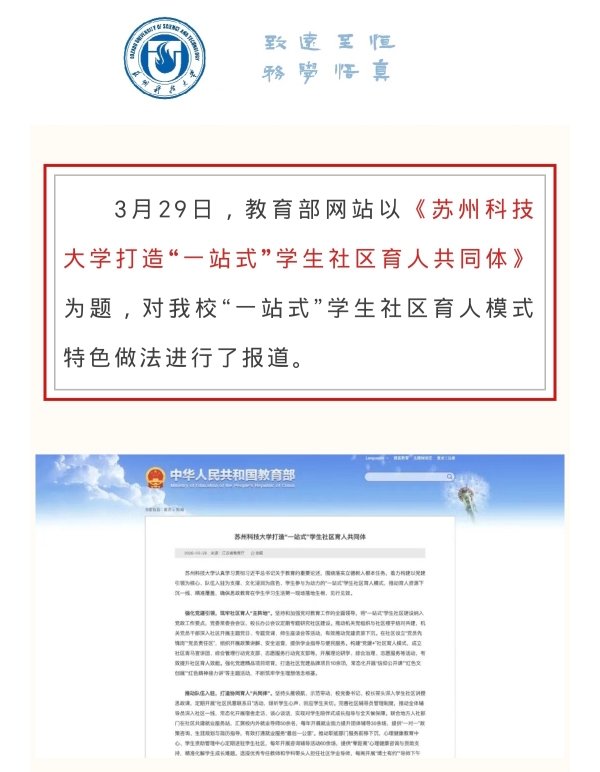 教育部官方网站报道!苏州科技大学打造“一站式”学生社区育人共同体