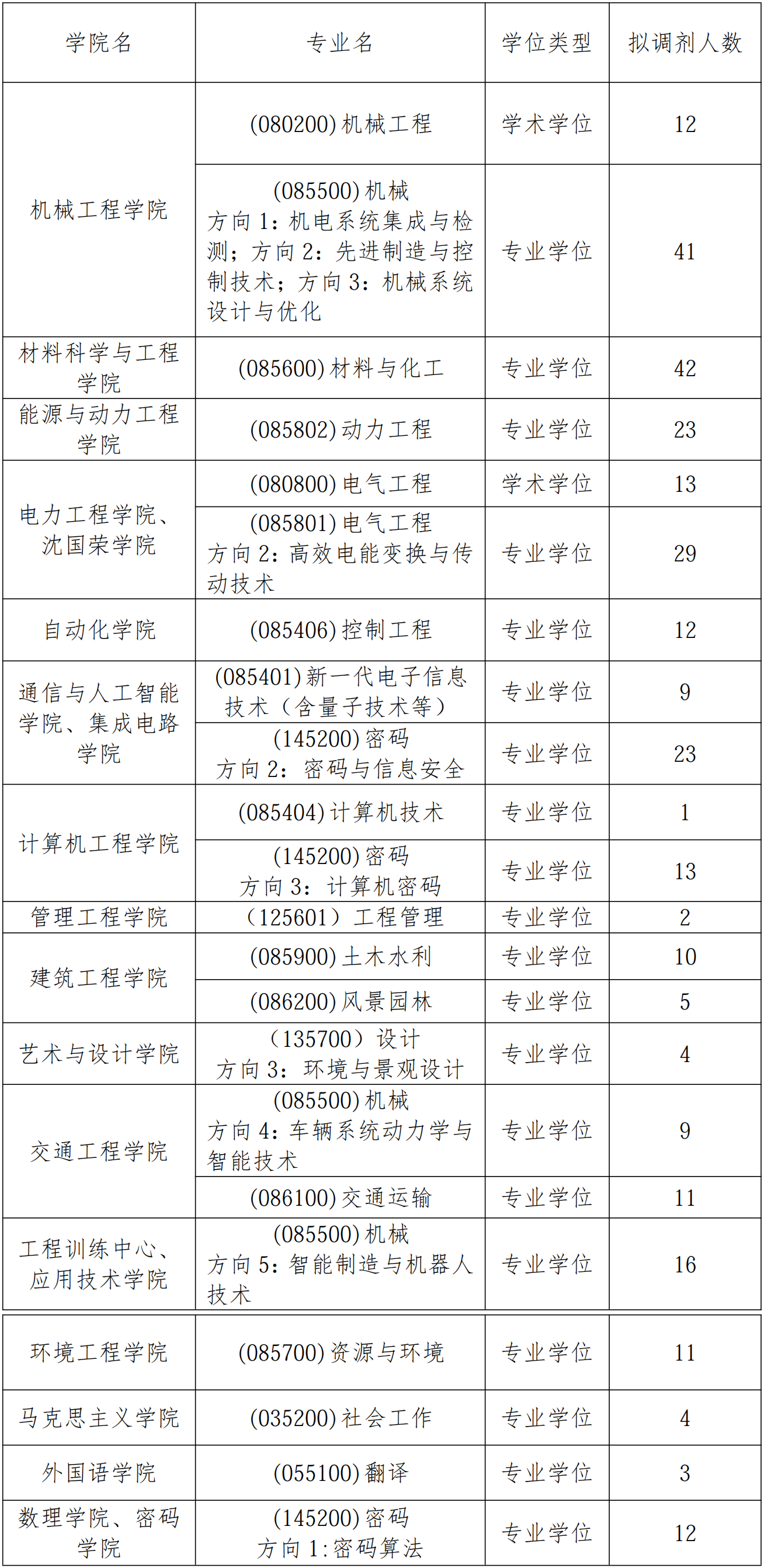 根据南京工程学院2026年硕士研究生招生计划及一志愿考生复试情况,经初步测算,以下专业拟接收调剂考生: