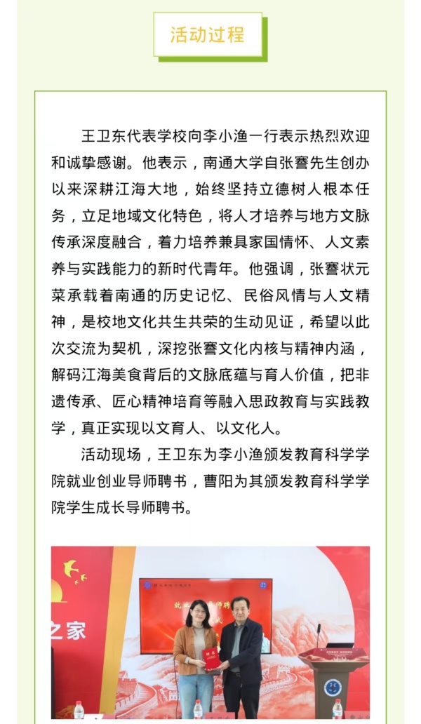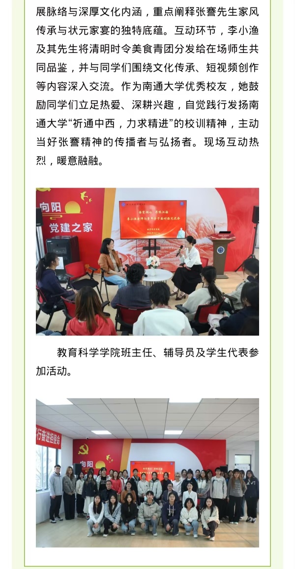 李园“一站式”学生社区举办“寻味南通”张謇文化交流活动