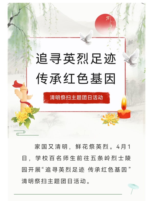 学校开展“追寻英烈足迹 传承红色基因”清明祭扫主题团日活动