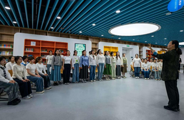 作为本次共建活动的亮点环节,国家一流课程主持人、教育科学学院学前教育系优秀党员教师韩恬恬副教授,以《师者先美,以美育人——唱给儿童最美的歌》为主题,在少儿图书馆内为在场师生和图书馆工作人员带来了一堂生动而深刻的美育公开课。韩教授巧妙融合中华优秀传统文化与外国经典儿童音乐元素,以合唱、律动、情景表演等多样形式为载体,将“党建+专业”理念有效融入课堂实践。她带领学前教育师范生们在歌声与律动中感悟美的力量,在互动与体验中涵养教育情怀。这堂别具匠心的“行走的课堂”不仅是一次思政教育与审美教育的深度融合,更是一场直抵心灵的育人实践。活动现场气氛热烈,师生积极参与,获得在场人员的一致好评。