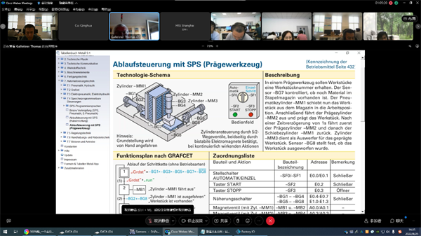 8月22日-26日,德国汉斯·赛德尔基金会选派德国机电专业教育专家Thomas老师为常熟市滨江职业技术学校老师进行了线上授课。为了专业方面沟通顺畅,汉斯·赛德尔基金会还选派了潍柴职业大学的陈利民老师全程在线为老师们翻译,同时还选派了基金会工作人员肖女士到现场全程陪同,及时反馈老师们在培训中的问题。本次培训的主要内容为博图TIA软件应用以及德国职业教育中常见的行动导向教学法的实施等方面内容,课程内容生动丰富,形式多样,专业性强。