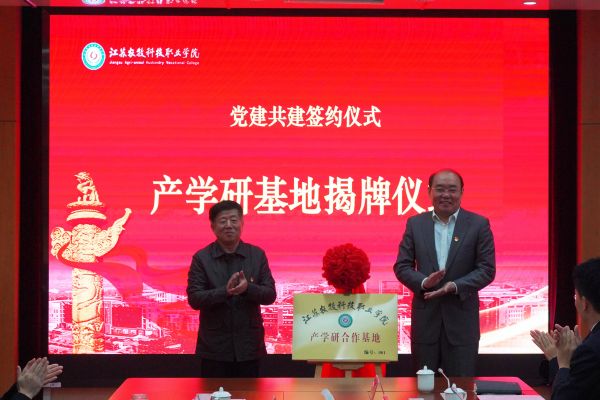 江苏农牧科技职业学院党委书记何正东,泰州市农业农村局局长、市生猪产业联盟党委书记蒋向荣共同为产学研合作基地揭牌。泰州市农业农村局总畜牧兽医师、泰州市生猪产业联盟党委副书记夏新山以及江苏农牧科技职业学院党委副书记郑义、组织部、科产处、马克思主义学院、动物科技学院和泰州市生猪产业联盟部分成员单位出席活动。
