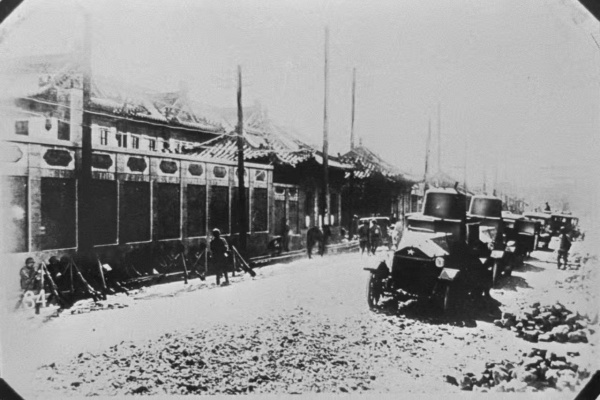 资料照片:九一八事变日军装甲车横行在沈阳城最繁华的中街上。 新华社发
