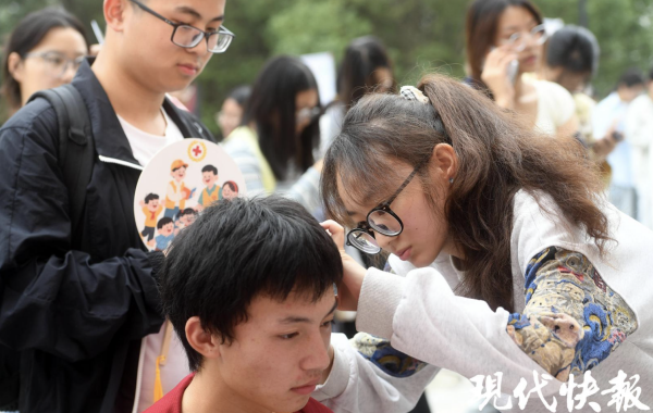 现代快报记者在现场注意到,无论是学院的社区品牌活动成果还是中华优秀传统文化的展示和体验区都热闹非凡。临床医学院中医特色疗法展示区的学生志愿者、23级中医专业的梅佳音从11:15一直忙到14:30多才歇下来。她现场展示的专业基本功——中医特色外治法、耳穴压豆体验项目备受欢迎。梅佳音说,她没有想到学院体验项目如此受同学们的欢迎,大家不少是冲着想要减肥、改善睡眠和气血不足等需求而来的。她很开心通过这次活动机会,让大家对中医、健康有更多的认知。