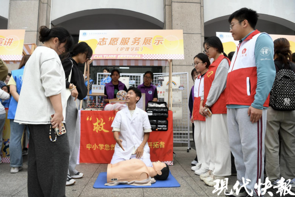 学校护理学院护理专业大一学生孙抒洋第一个体验的是自己所在的护理学院志愿服务展示项目。在学长的带领下,她第一次感受了心肺复苏按压技术。体验完,孙抒洋直言提升了个人才能,同时还感受到发挥个人专业所长服务他人的美好。