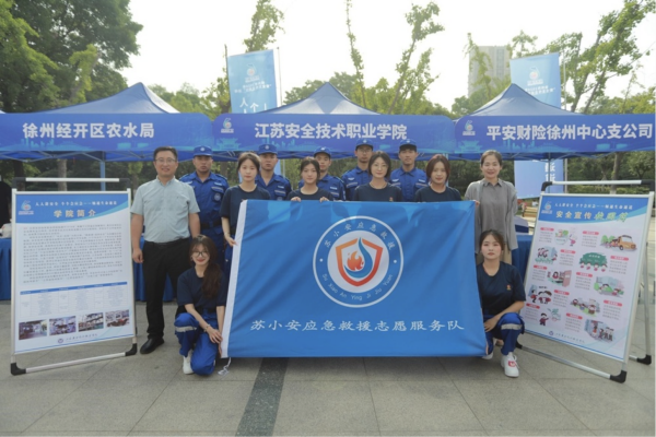 灭火器实操演示台前,学生志愿者手把手教社区老人按压喷嘴;校园消防设施检查中,他们带着专业仪器排查每一处安全隐患;暑期社区课堂里,心肺复苏、防溺水知识讲解赢得阵阵掌声……这支活跃在徐州街头巷尾、校园内外的“苏小安”应急救援志愿服务队,是江苏安全技术职业学院依托安全应急类特色专业打造的“青春名片”。40名学生志愿者以“服务校园、回馈社会”为宗旨,在一次次应急志愿服务中,为公众筑起安全防线,实现了专业学习与实践育人的深度融合,走出了一条“以练促学、以服务强技能”的特色育人之路。