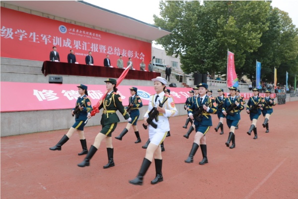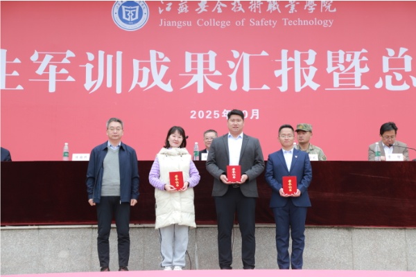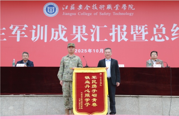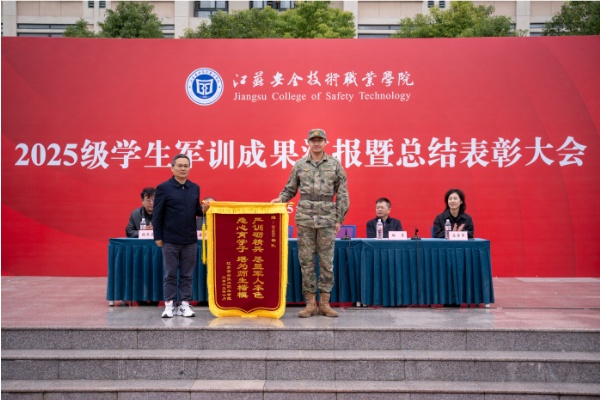 秋色浩无迹,风露洗晴空。10月24日,江苏安全技术职业学院举行2025级新生军训成果汇报暨总结表彰大会。全体在家校领导出席大会。驻徐某部队政治教导员陈宏艺、欧阳凯受邀出席大会。各相关职能部门负责同志、各二级学院党总支书记、全体教官、新生辅导员及2025级全体学生参加大会。