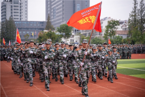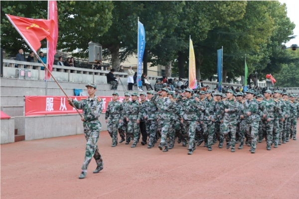 大会在雄壮的国歌声中拉开帷幕。各营连方阵依次走过主席台接受检阅,同学们步伐整齐、精神抖擞、口号响亮,动作规范有力,充分展现了军事训练所培养出的扎实素养与严谨作风。