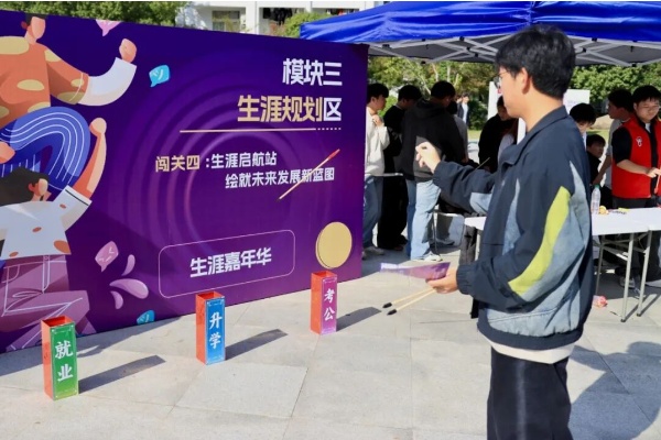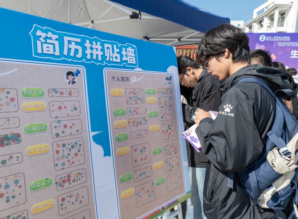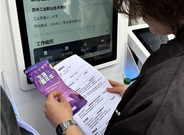 活动通过沉浸式体验与智能化工具赋能,吸引了6000余名学生参加。现场围绕8个特色闯关项目展开,采用“游戏通关+沉浸体验”双轨模式。学生在“生涯初体验”中,通过绘制“生涯彩虹图”梳理人生角色演变,借助“走探职途”“能力金字塔”,匹配个性化职业方向;通过“生涯启航站”“岗位指南针”“梦想之城”等关卡,结合行业趋势解析职业路径;通过“简历拼贴墙”“团队挑战赛”等实践环节,开展岗位认知训练与团队协作模拟,强化职场软技能。AI简历机器、AI面试一体机、AI生涯规划机成为学生关注焦点。同学们通过AI工具获得职业生涯规划、打印彩色简历、面试建议。