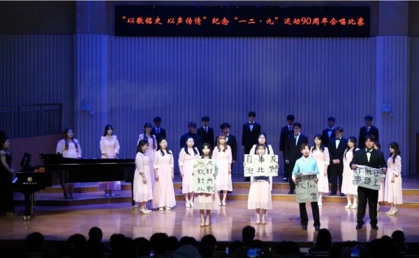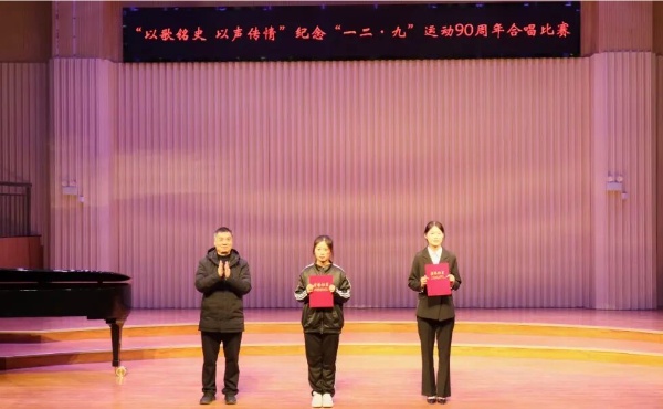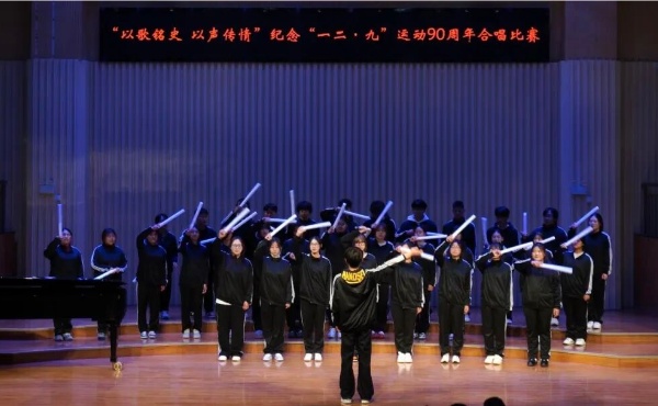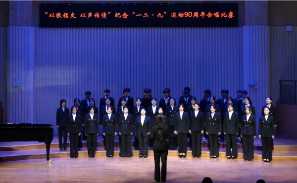 12月8日晚,宿迁幼儿师范高等专科学校在音乐厅举办“ 以歌铭史 以声传情 ”纪念“一二·九”运动90周年合唱比赛,校领导班子全体成员、中层干部及师生代表共同观赛。本次活动以歌声回望峥嵘岁月,既是一堂生动的爱国主义教育课,更引导学子在红色旋律中明晰使命、砥砺奋进。