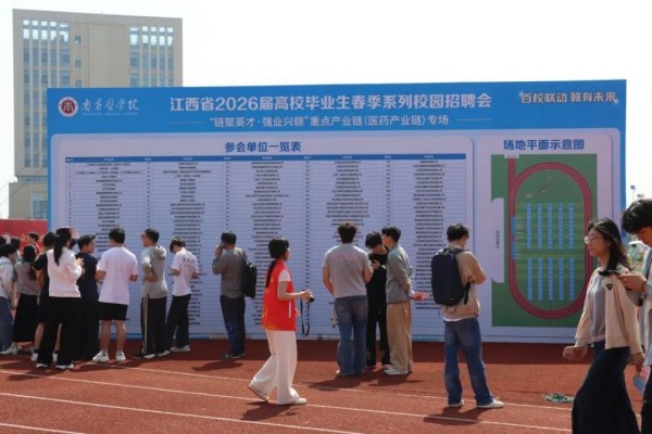 春风浩荡引英才,招聘会场暖意浓。4月18日,“百校联动・赣有未来”江西省2026届高校毕业生春季医药产业链专场招聘会在南昌医学院火热开启。现场人山人海、秩序井然,岗位琳琅满目、供需双向火热,一场校企相聚、双向奔赴的就业盛会如期绽放,为广大应届毕业生打通求职快车道,助力青年学子圆梦职场、奔赴前程。